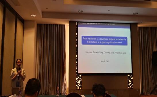 公司教师周立群、张永康、李龙、郝丽杰、马羚未参加了此次会议。郝丽杰老师在复杂网络与神经动力学分会作了题为“一个基因调控网络模型中的可逆和不可逆双稳切换”的学术报告。通过参加这次会议,老师们开阔了学术视野,进一步加深了与同行的交流,为公司方程团队下一步的科研发展开拓了思路。