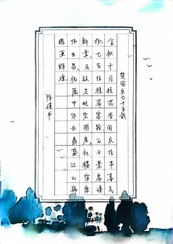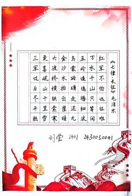 为庆祝中华人民共和国成立75周年,yl6809永利开展主题为“学为师范,写意风采”的三字一画展示活动。“三字一画”,即钢笔字、粉笔字、毛笔字和简笔画,是教育领域的重要技能,也是艺术表达的独特方式。在这个举国欢庆的节日里,它们成为同学们向祖国献礼的独特方式,共绘祖国壮丽画卷。