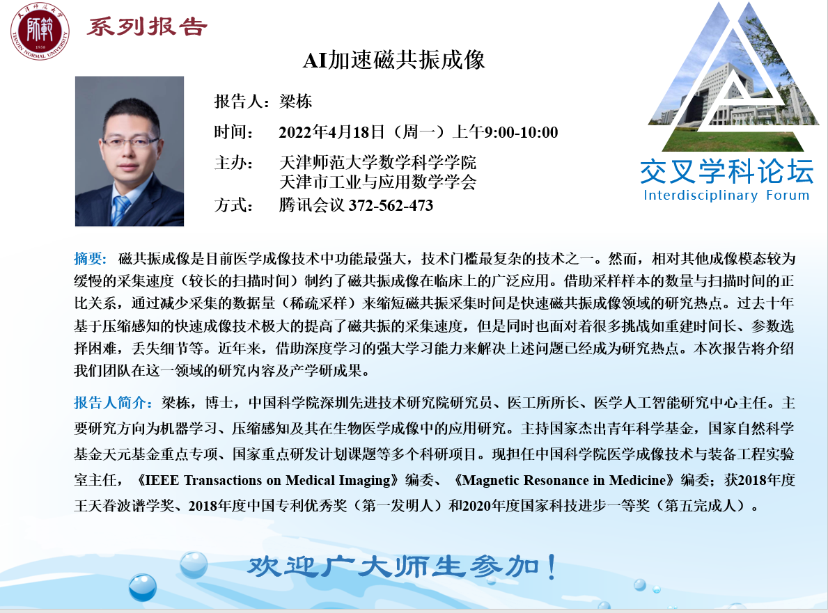 【预告】学术报告(2022-4)4月18日报告--AI加速共振成像