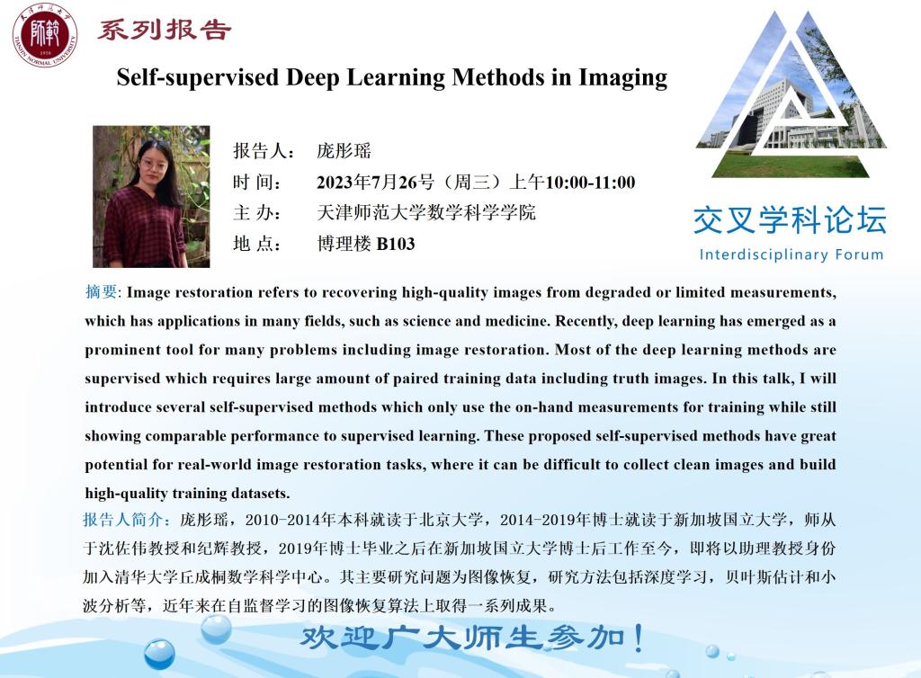 【预告】学术报告(2023-22)7月26日—Self-supervised Deep Learning Methods in Imaging