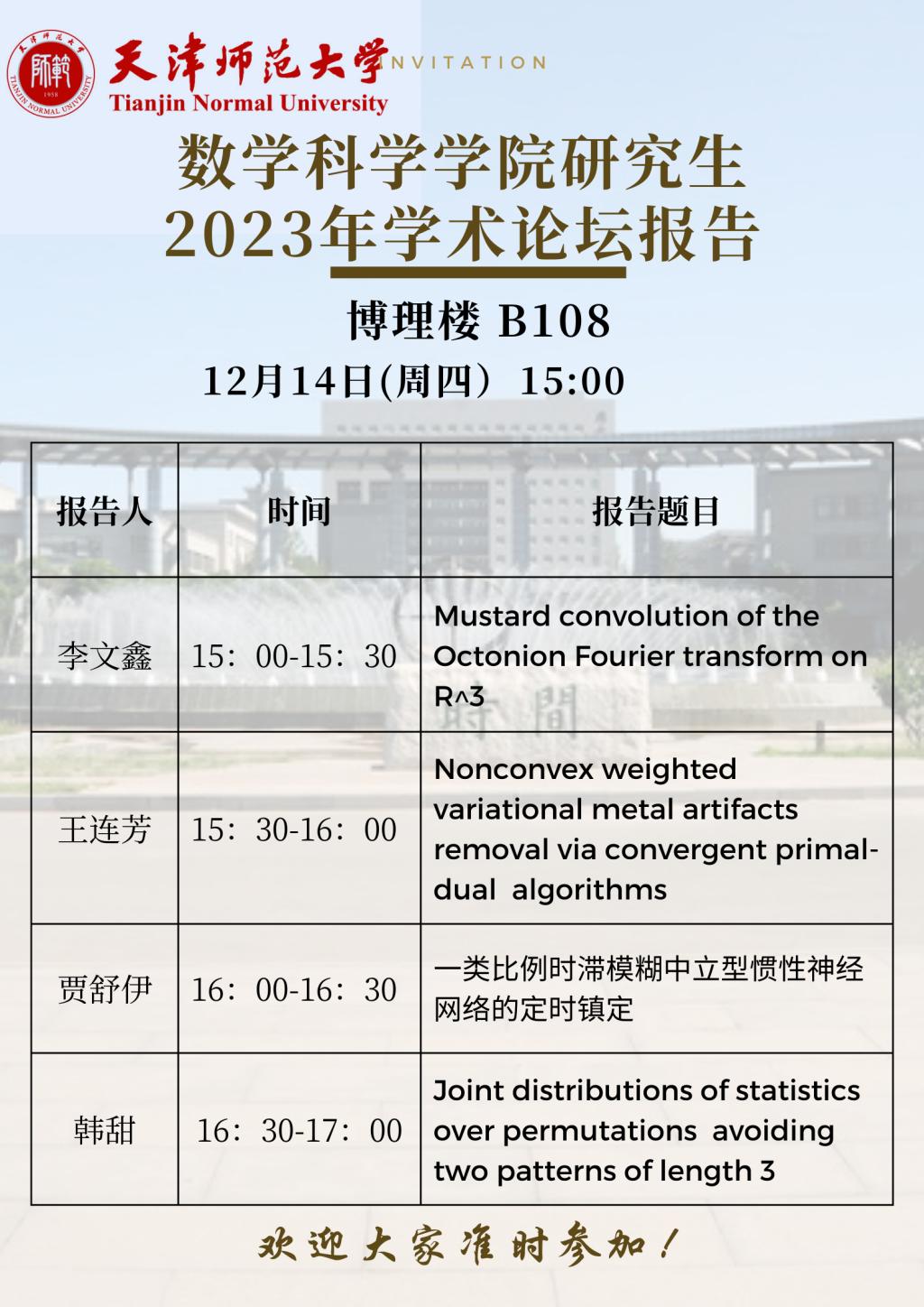 【预告】学术报告(2023-41)12月14日—yl6809永利研究生2023年学术论坛报告