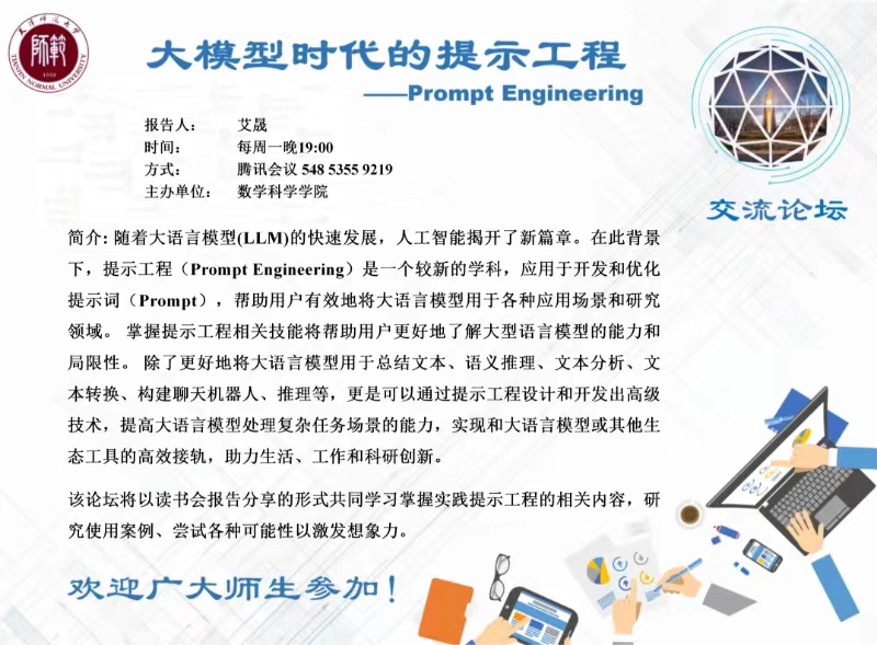 【预告】学术报告(2023-42)12月11日—大模型时代的提示工程——Prompt Engineering