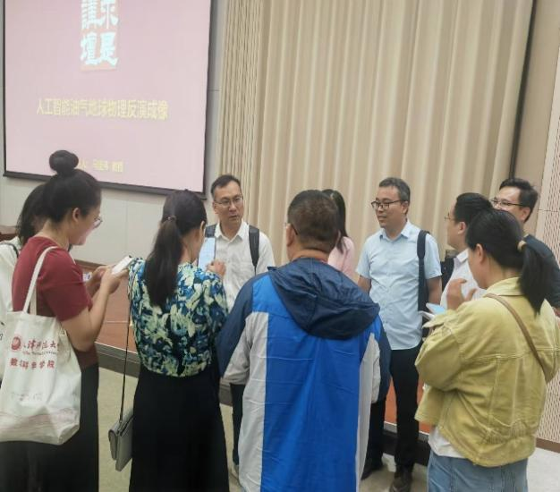 报告会上,马坚伟教授结合自身的实践经验和研究成果,就开展科研的思路与同学们进行分享交流。马坚伟教授此次讲座围绕人工智能油气地球物理反演成像展开,提出了网络重参数化的地震全波形反演方法和隐式神经网络全波形反演方法,并介绍了基于井震资料学习训练的智能三维快速建模方法和实际应用情况,最后对人工智能方法进行了展望。通过聆听马教授精彩的讲座,同学们深刻领悟到数学和人工智能在实践中的应用。
