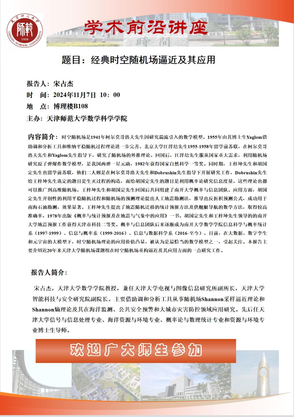 【预告】学术报告(2024-23)11月7日——题目:经典时空随机场逼近及其应用