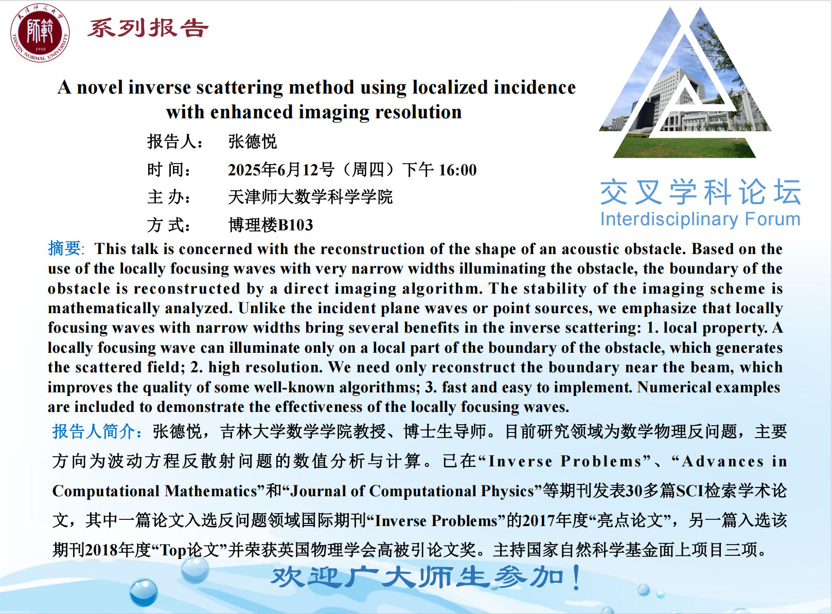 【预告】学术报告(2025-25)6月12日——A novel inverse scattering method using localized incidencewith enhanced imaging resolution